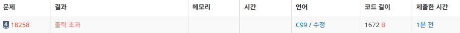 근데 뭔가 하면서도 출력 초과든 런타임에러든 이건 좀 아니지 하는 생각이 들기는 했다.